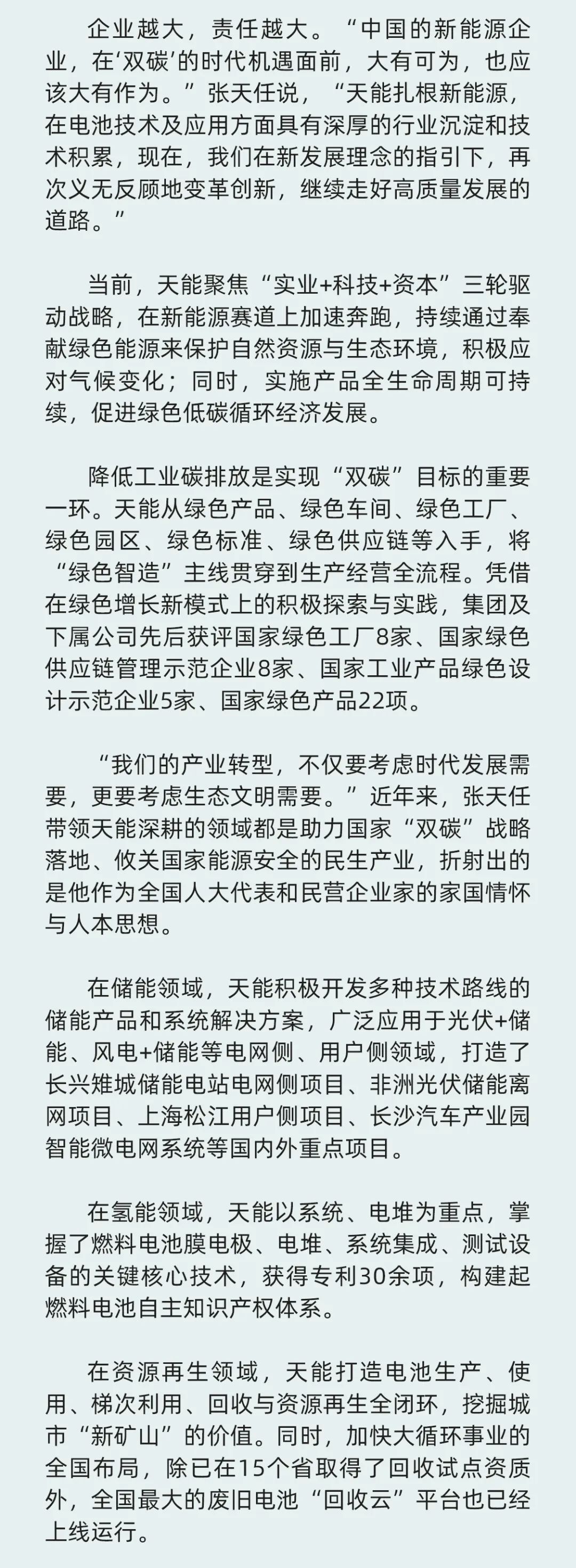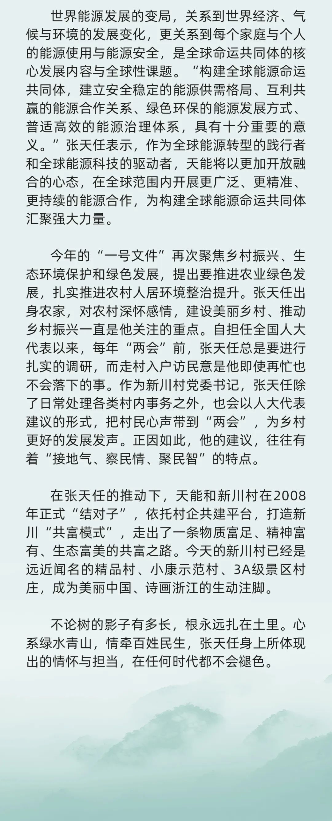 其中,《全国人大代表张天任:胸有青山更行远》全文如下: